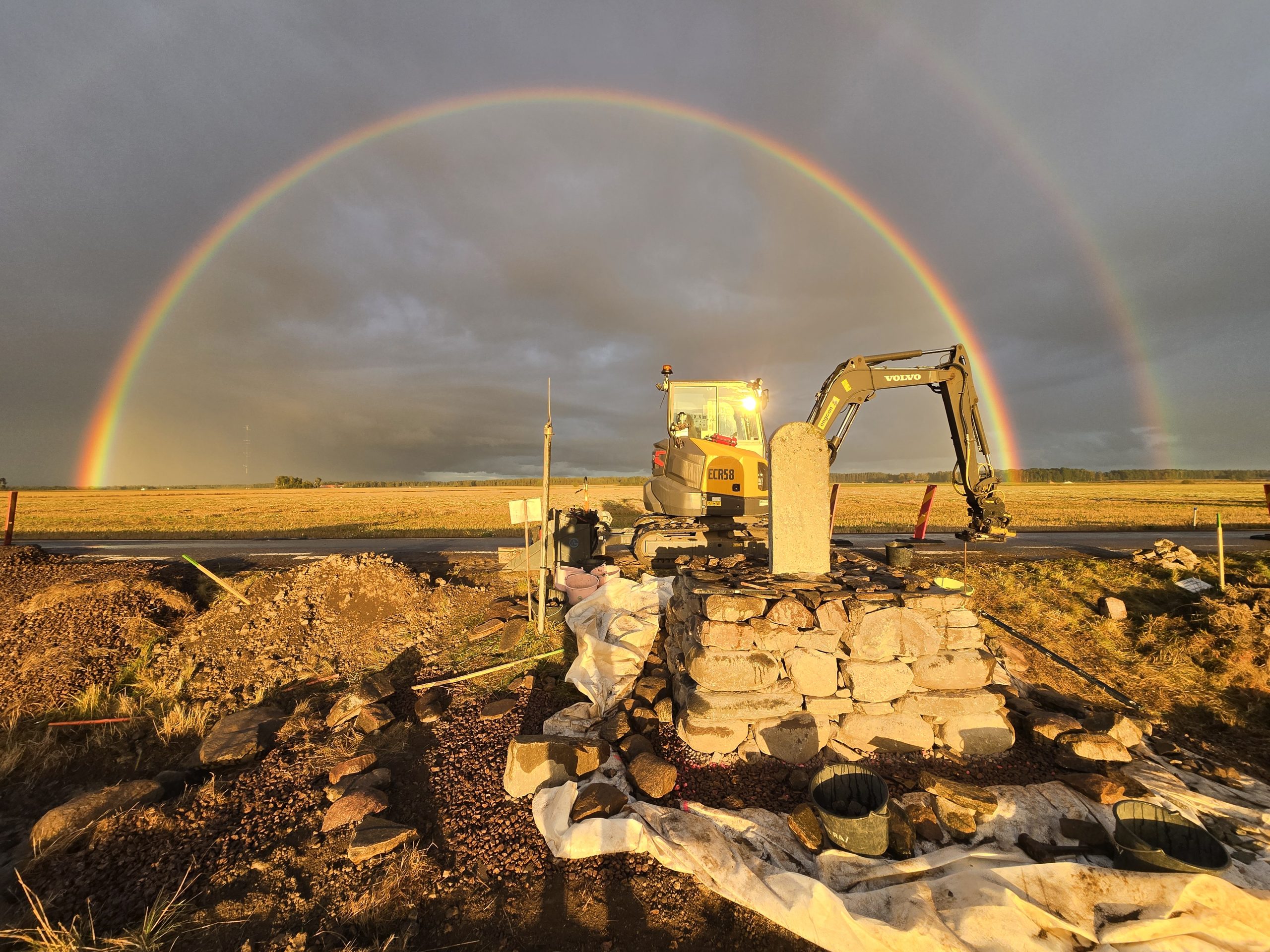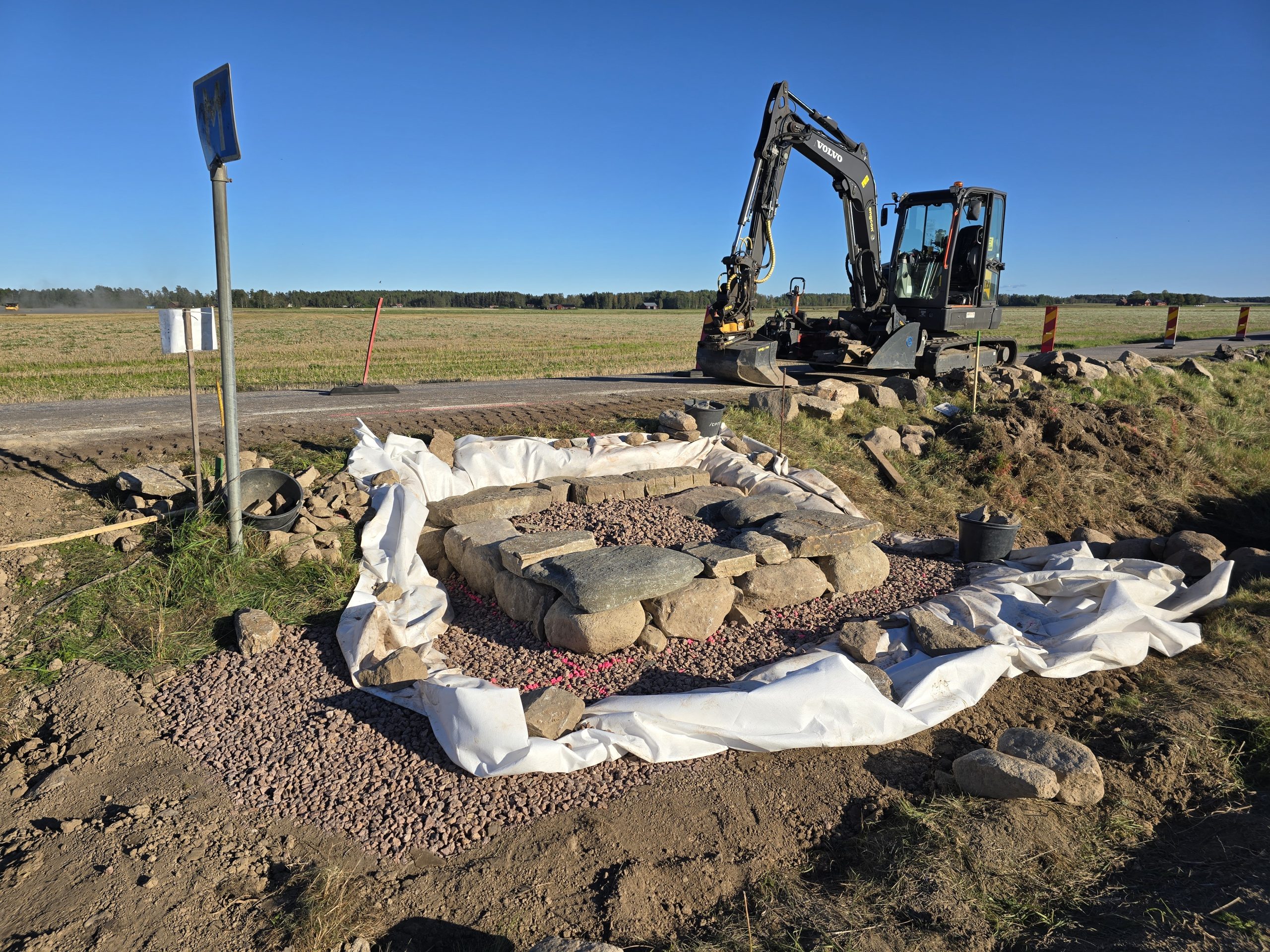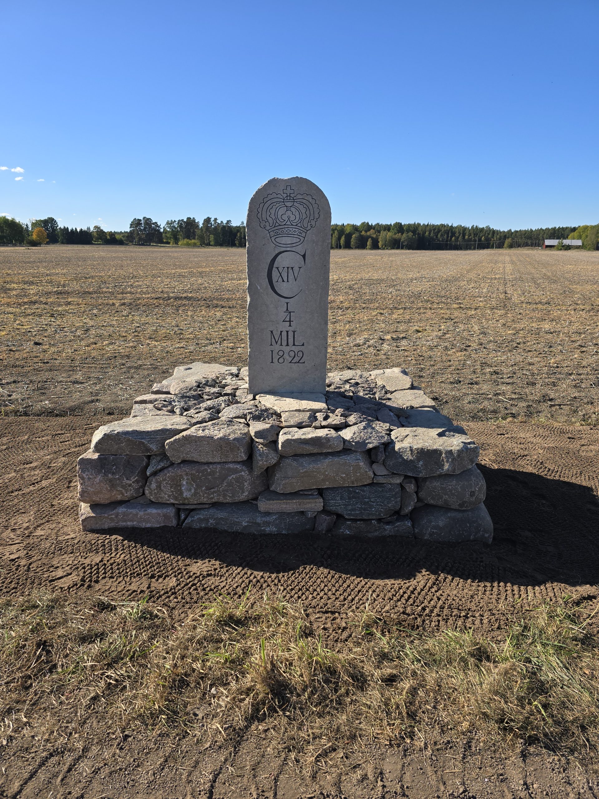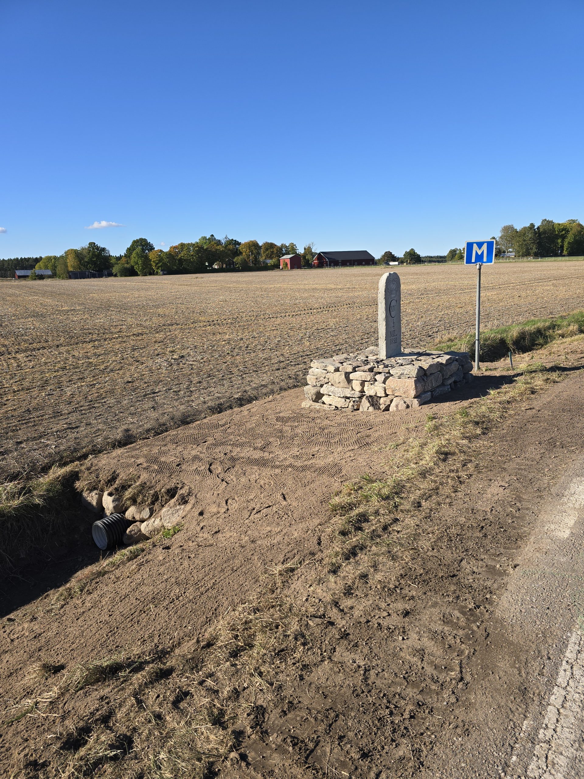 Renovering av milstolpe med postament.