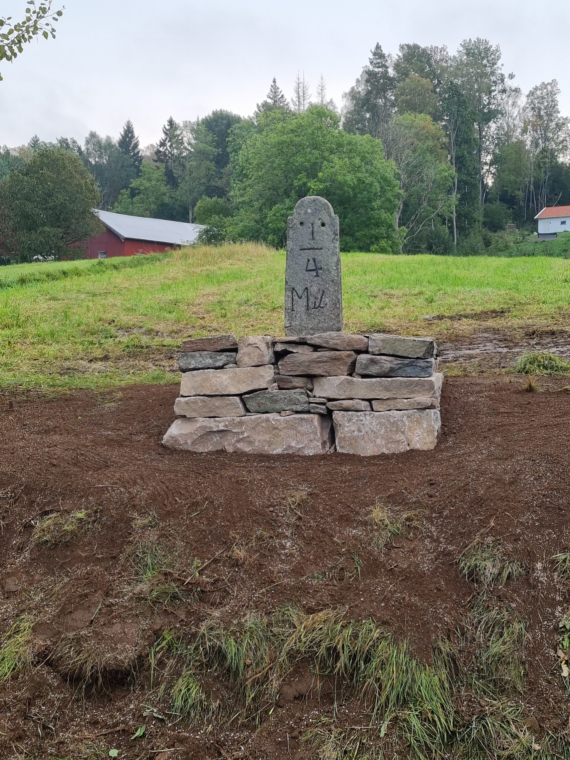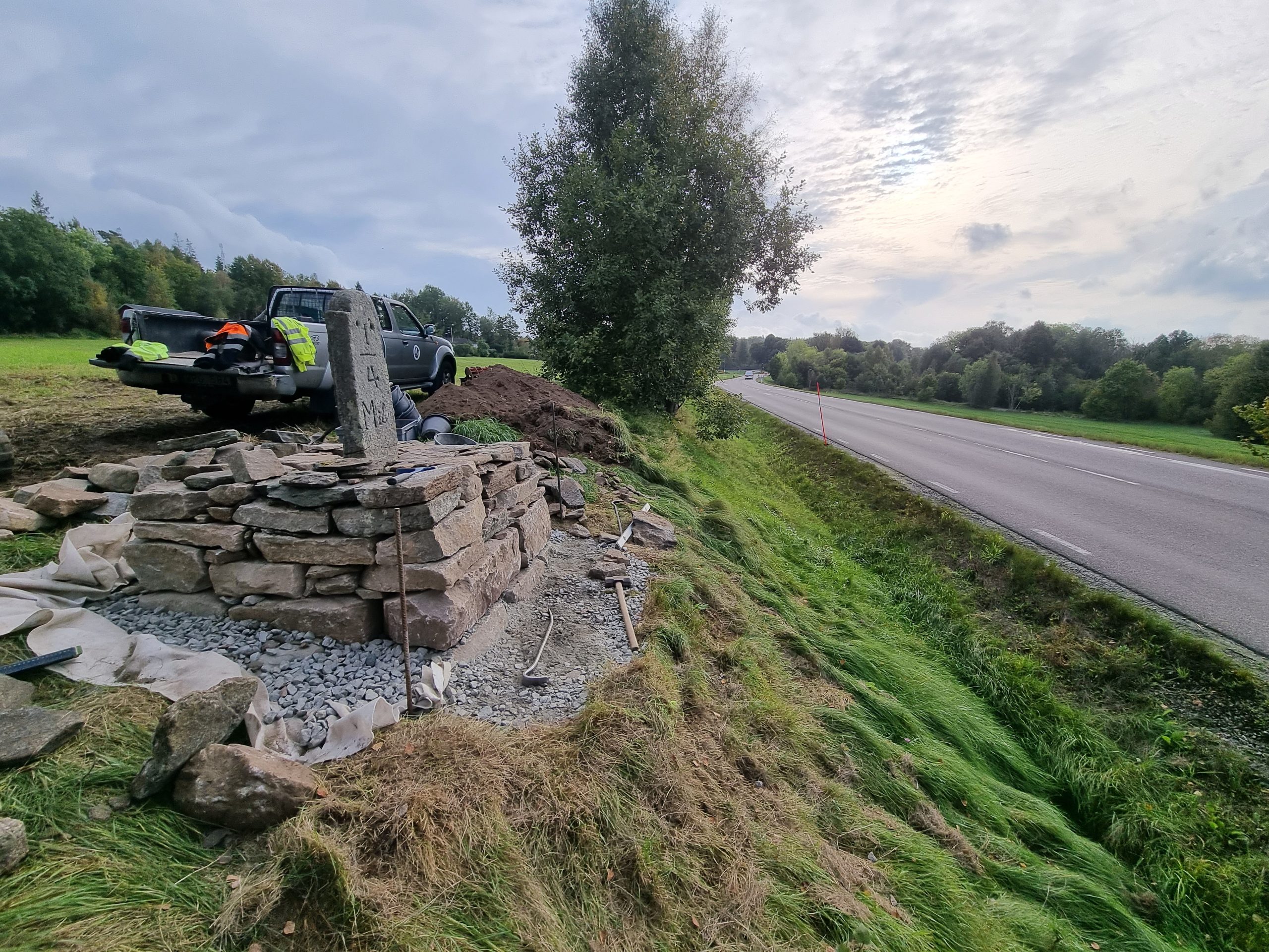 Renovering av milstolpe med postament.
