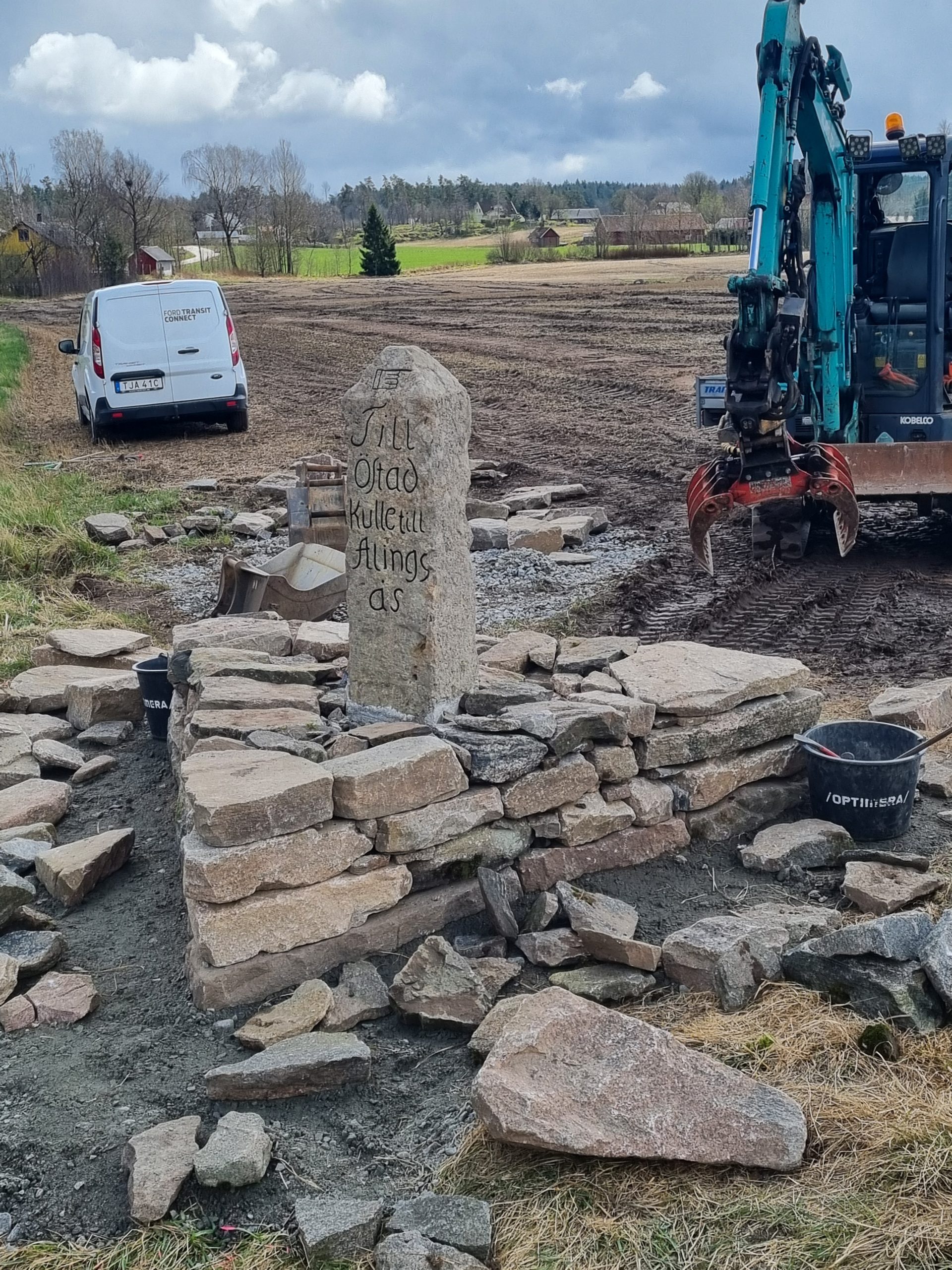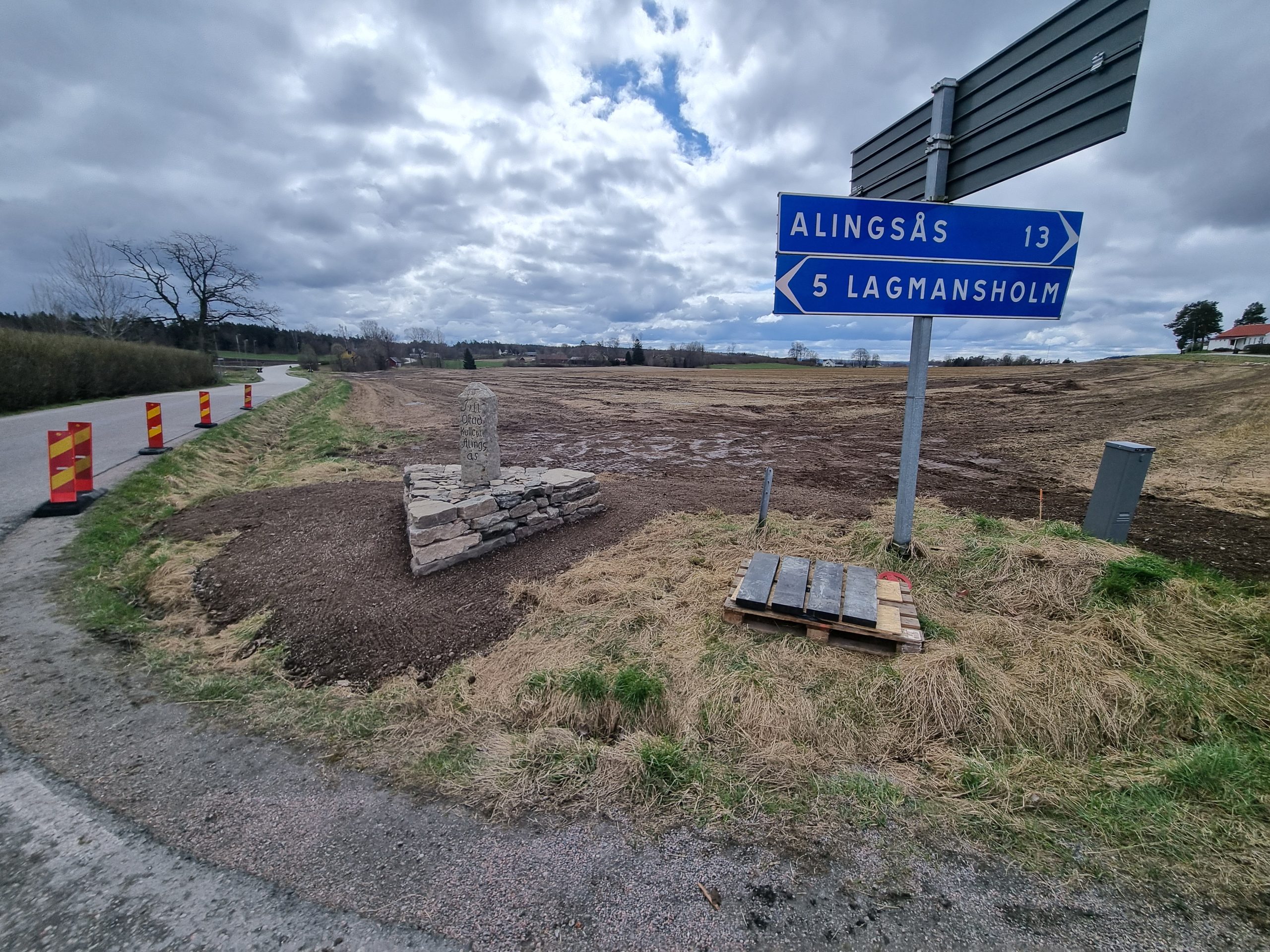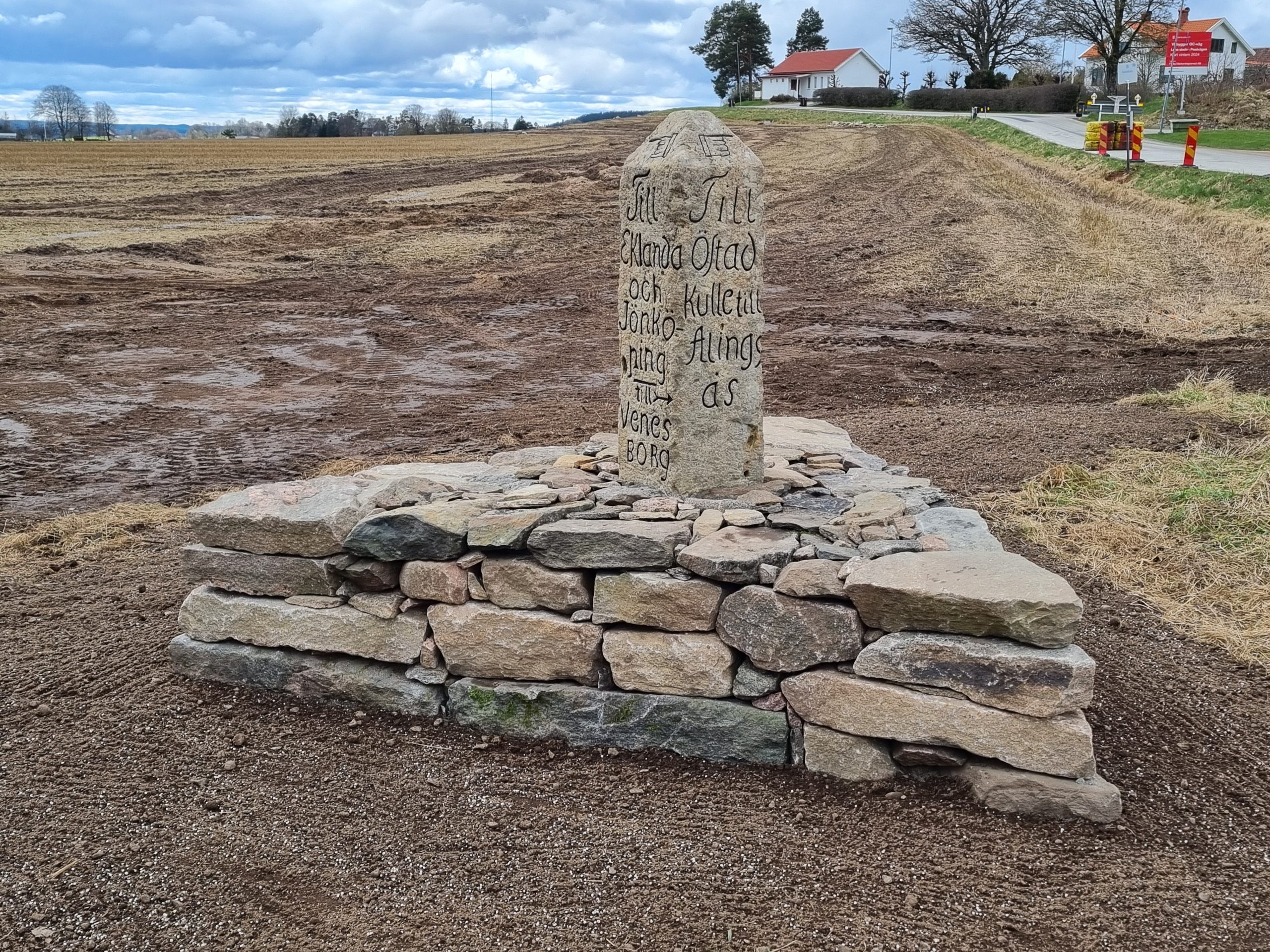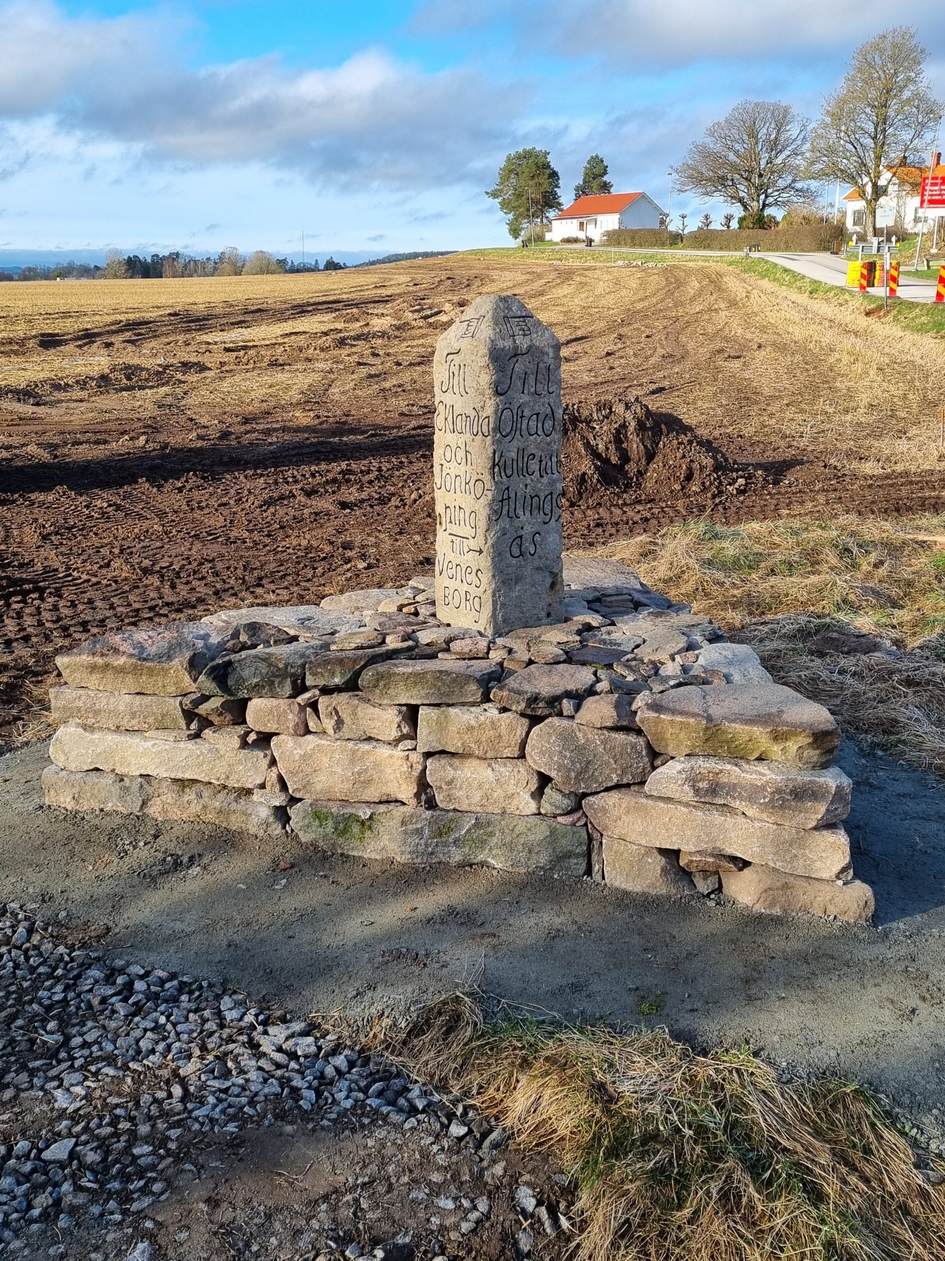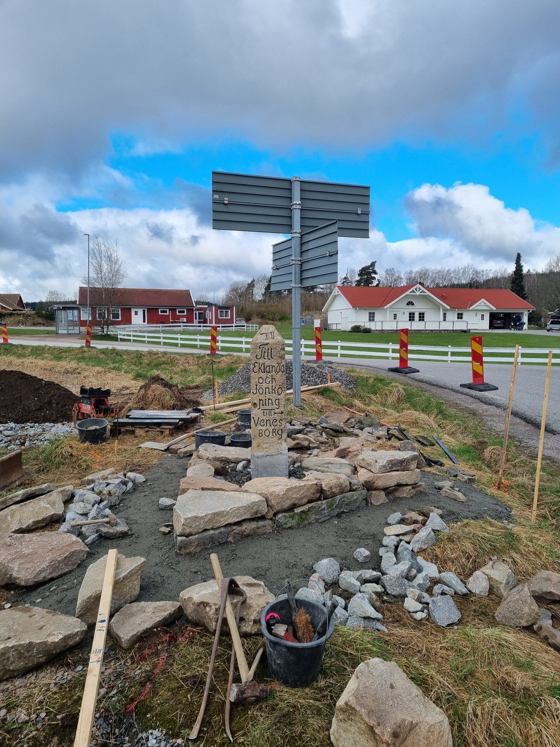 Renovering av vägvisarsten med postament.
