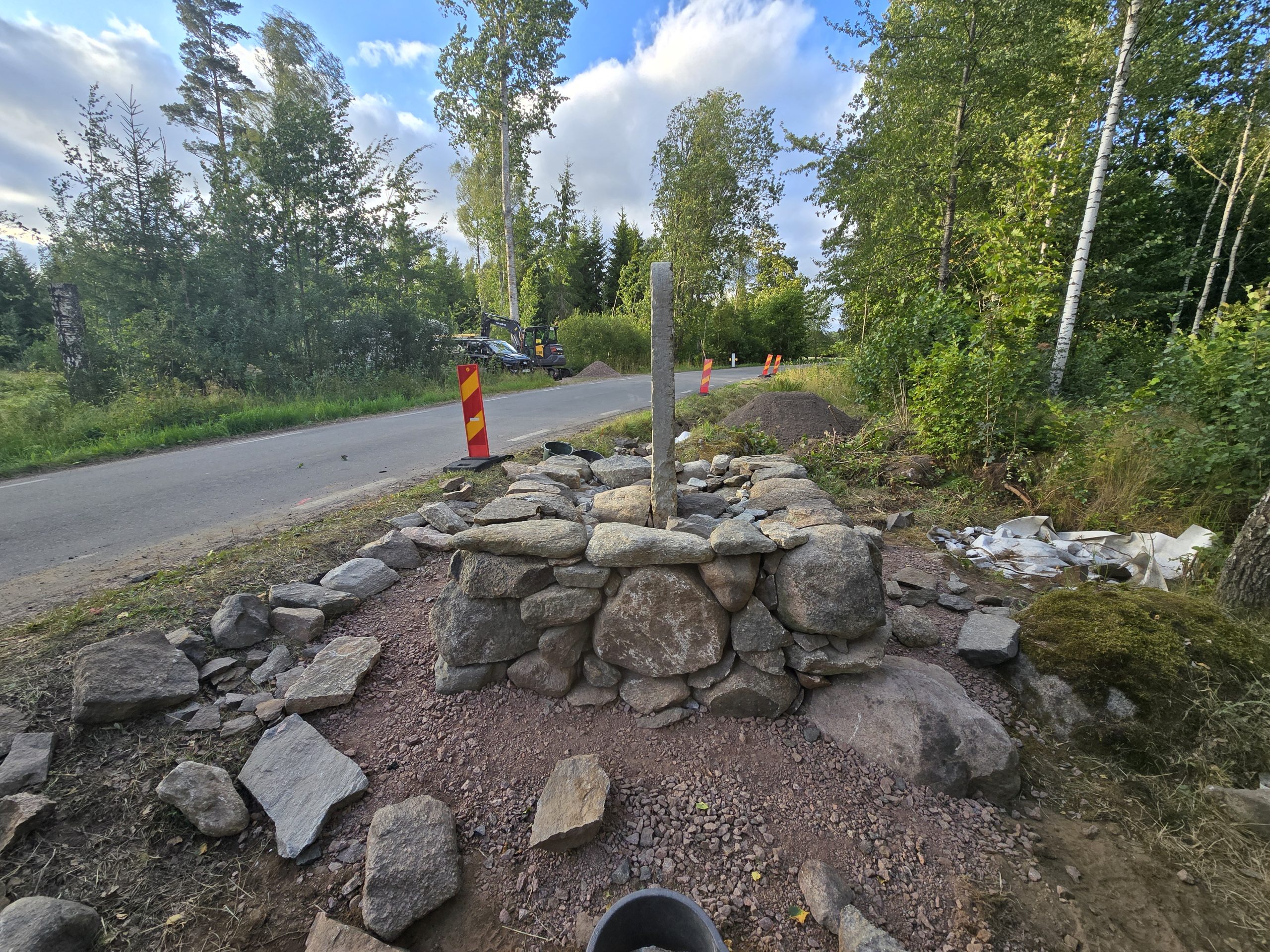 Renovering av milstolpe med postament